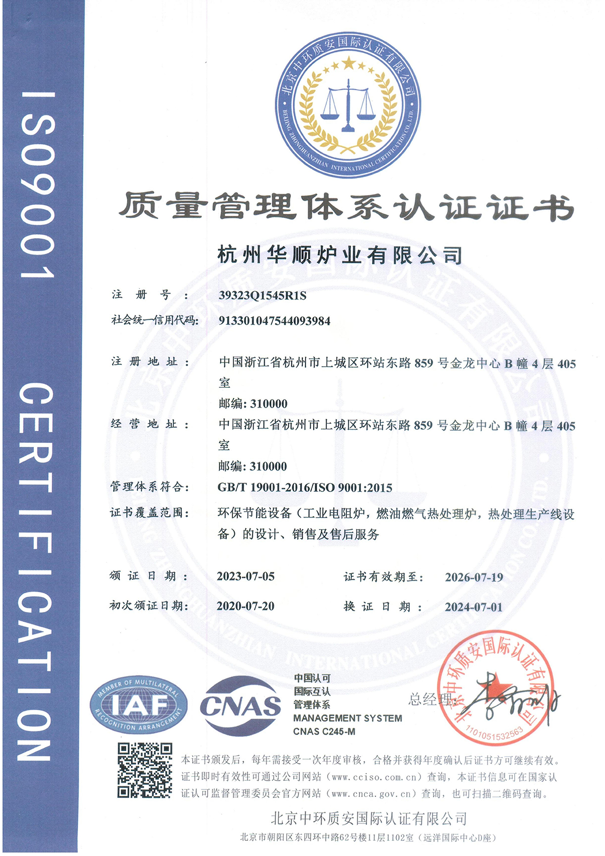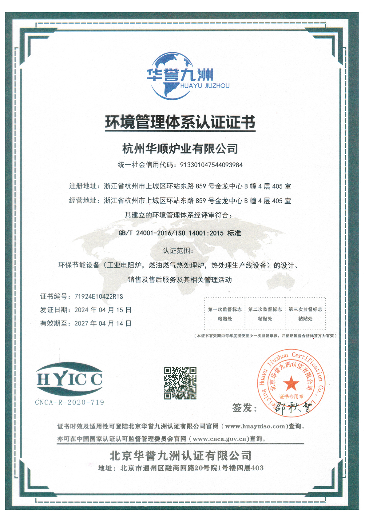 环境管理体系证书24年