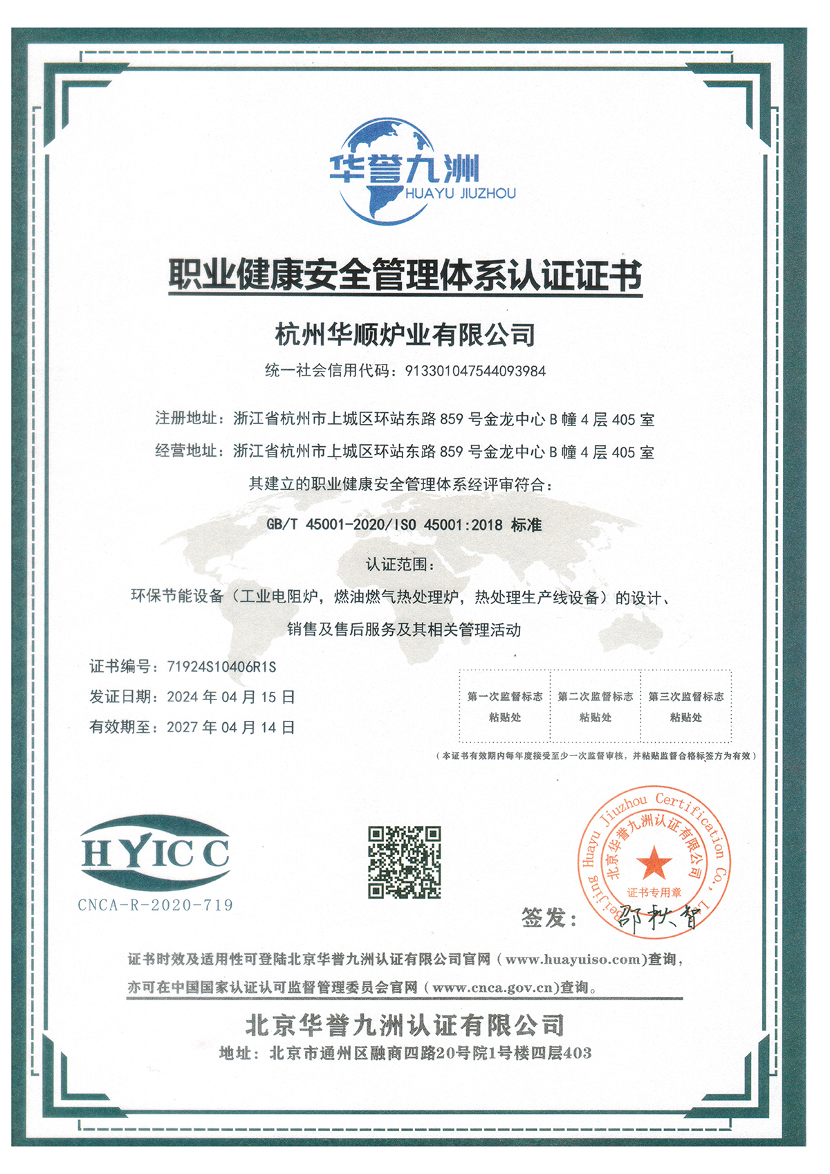 职业健康体系证书24年
