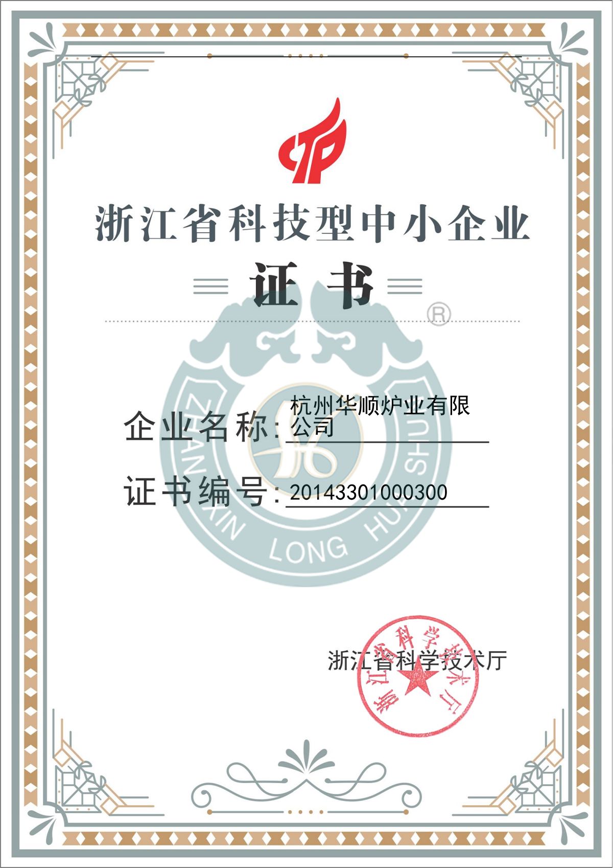 科技型中小企业证书