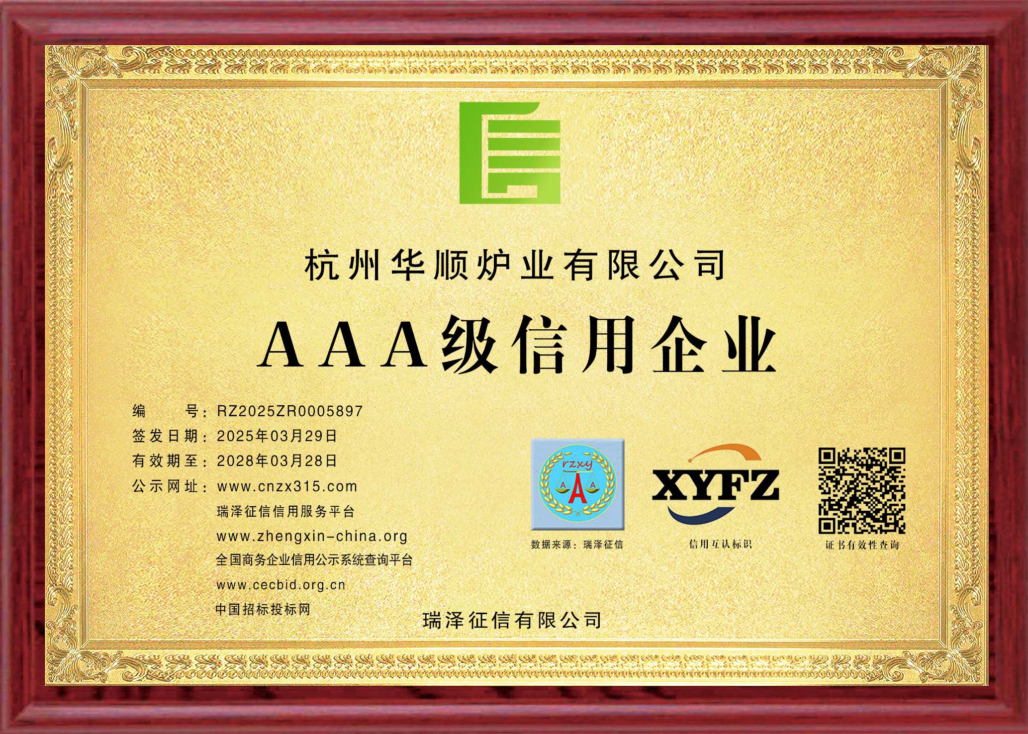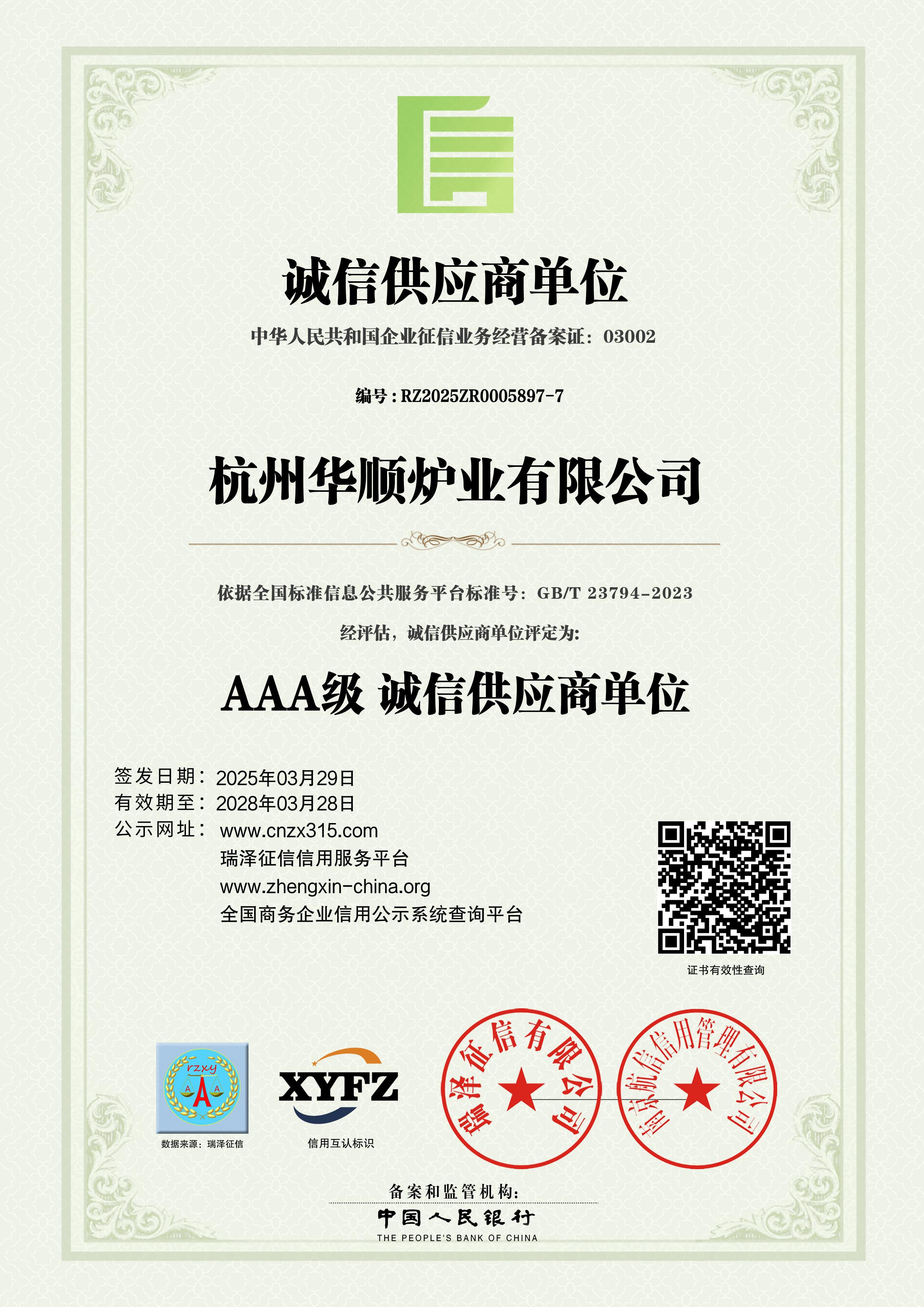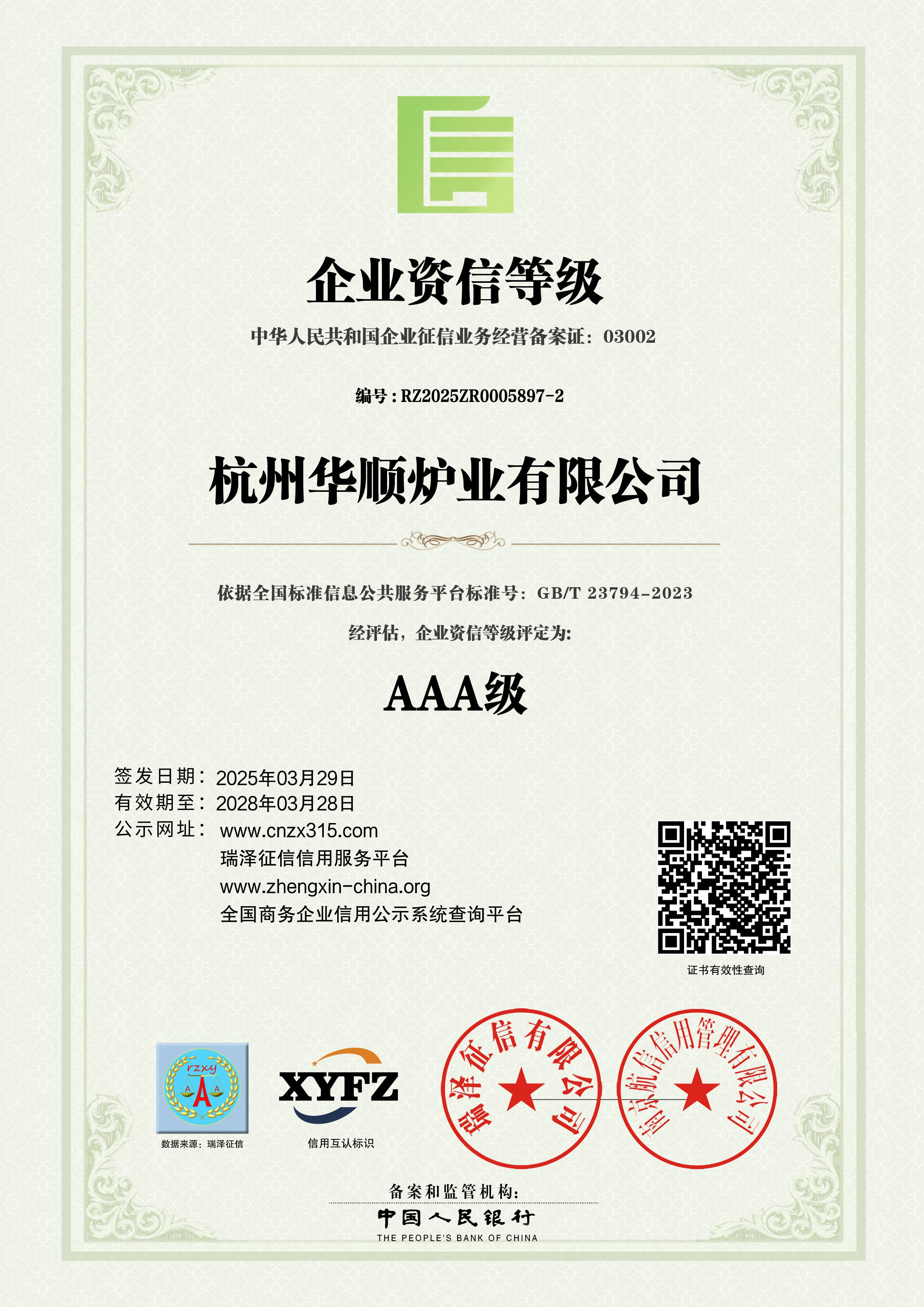 AAA级企业资信等级