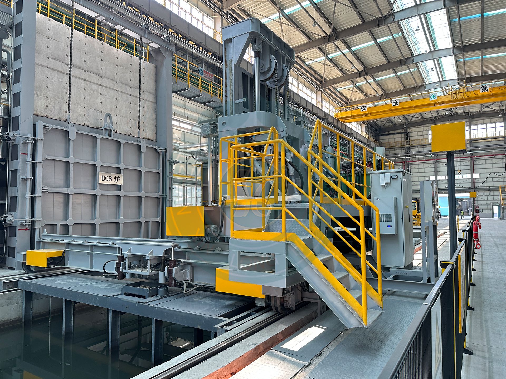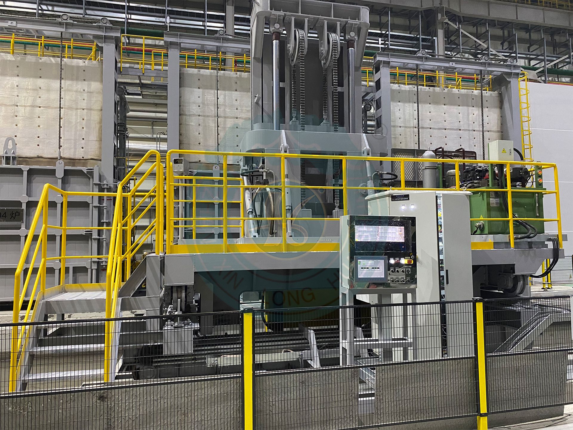本设备是为实现热处理操作机械化,工艺过程一致性,提高产品质量,减轻工人劳动强度,改善劳动条件而设计的。该机可实现三个自由度:大车行走、小车行走、料叉升降,驱动为电机或液压传动。具有为热处理生产装、取料双重功能。可实现工件在炉内、上下料架、或淬火池内各工位间的自由转移。装载量可定制,移动速动跟运动工位均可根据实现项目选择。