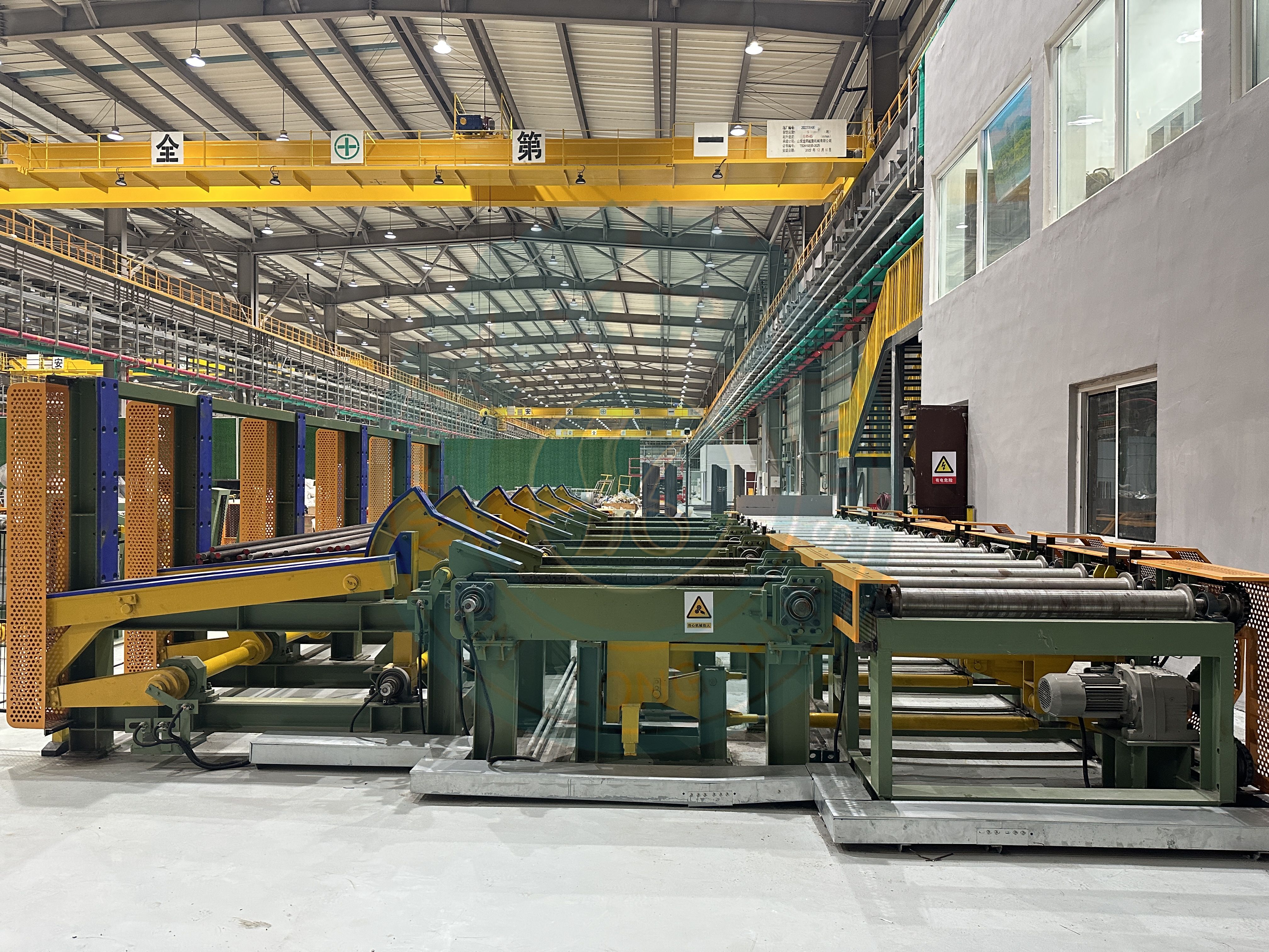 将分拣后的棒材横向推送至辊道,与热处理辊道速度匹配,避免碰撞。